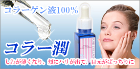 コラー潤 コラーゲン液100% 純粋生コラ−ゲン! シワシワ・たるみ肌に!! 貴重!!抽出した原料をそのまま製品にしました。 通常、化粧水や美容液に含まれるコラーゲンの配合量は 0.?〜?%と微量です。 本商品は、原液が100%。使った 瞬間にピーンとハルのが実感出来ます。 定価2839円(税別) |