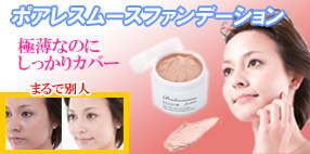 ポアレスムースファンデーション 塗った瞬間"毛穴"が消える ファンデーションなのに"ムース"!? だから使い心地快適!なのにカバー力抜群!! 薄づきだから肌への負担も少なく、肌にピンッとハリを持たせる新成分 「セラキュート」、余分な皮脂の分泌を防いで毛穴を引き締める「エバ ーマット」、いきいきとしたみずみずしいつやを持たせる「ヒアルロン酸」 などの美容成分の働きで塗るほどに肌を美しく。 定価3800円(税別) |